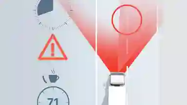 When the truck is moving at speeds above 70 km/hr, AAS will alert the driver if the system detects any inconsistent steering input and will suggest that the driver takes a break.