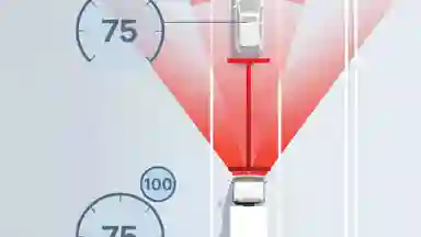 DWS helps drivers to maintain a safe distance from the vehicle ahead by giving a warning if a pre-set distance is reached. The driver can choose from four pre-set minimum distances.
